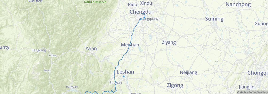 เส้นทางรถไฟ เดินทางจาก เฉิงตู (East) ไป เล่อซาน (Leshan Railway Station)