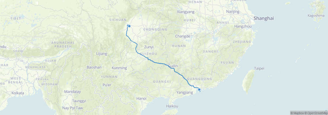เส้นทางรถไฟ เดินทางจาก เฉิงตู (West) ไป เซินเจิ้น (Shenzhen East Railway Station)