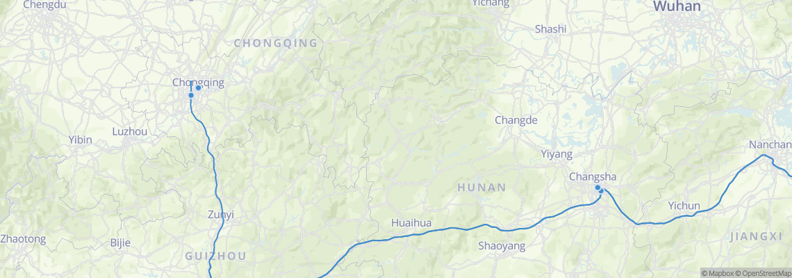 เส้นทางรถไฟ เดินทางจาก ฉงชิ่ง (West) ไป ฉางซา (Changsha South Railway Station)