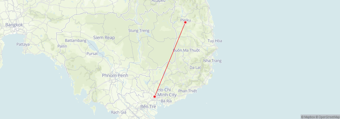 Khoảng cách từ Hồ Chí Minh đến Pleiku bao xa?