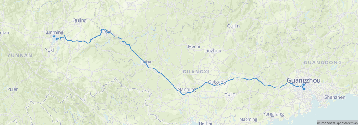 Chuyến tàu từ Côn Minh (Côn Minh) đến Quảng Châu (Ga Quảng Châu Nam)